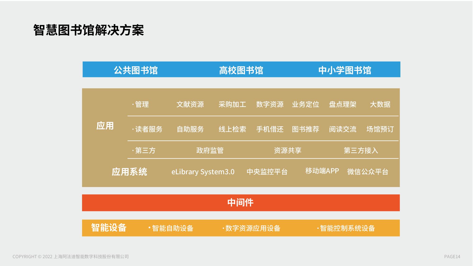 阿法迪智慧图书馆以智慧图书管理系统为业务支撑,各部分相互融合反馈,通过引进各类高效化、自助化的智能终端,并将反馈数据收集传送至智慧图书馆管理系统,进一步清洗、分析数据,并通过空间内的智能终端反馈于读者,使得图书馆真正成为物物互联的智慧化空间。